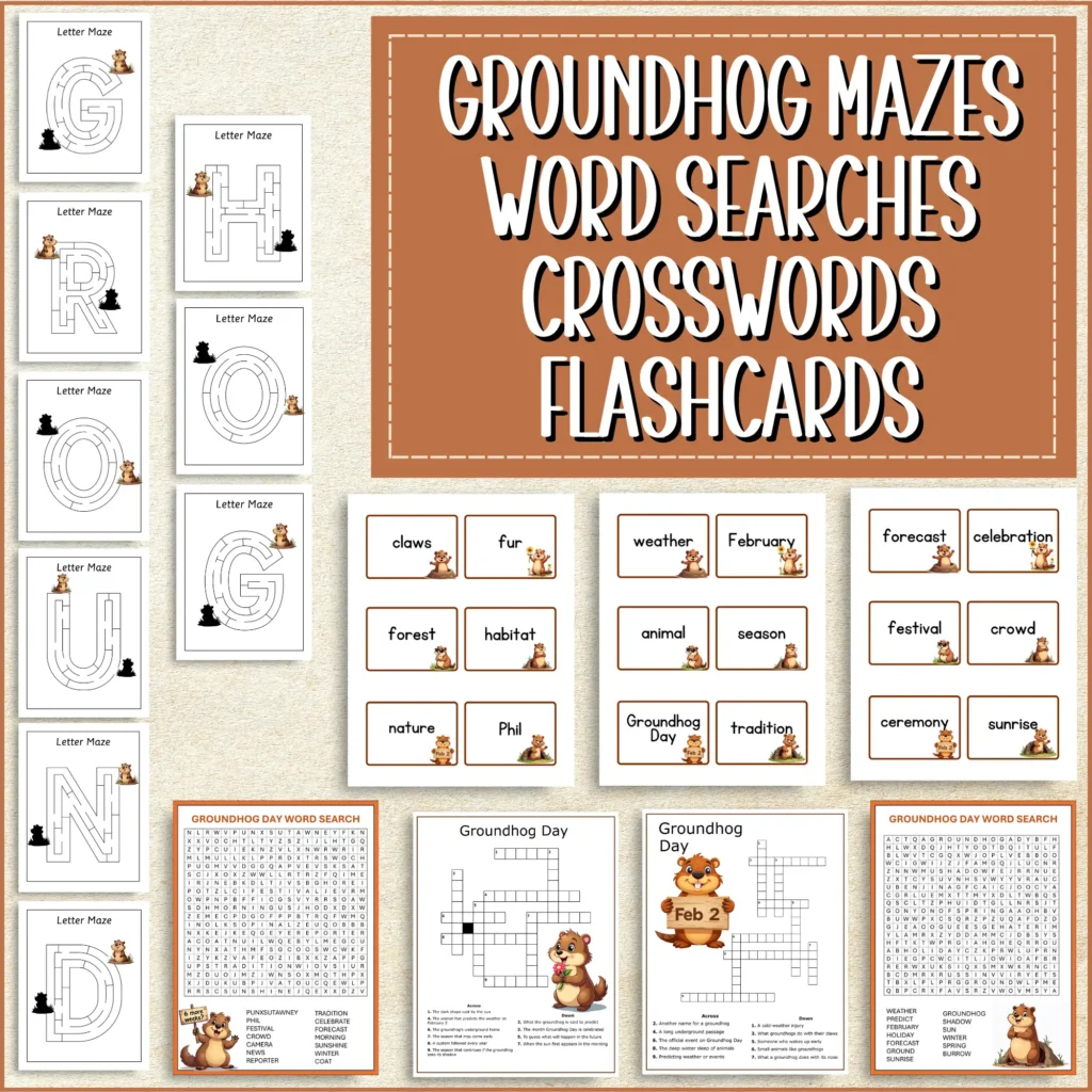 Bring Groundhog Day to life with this all-in-one printable activity bundle. Packed with games, crafts, worksheets, and clipart — perfect for classrooms, homeschool, parties, or reselling in your own shop.