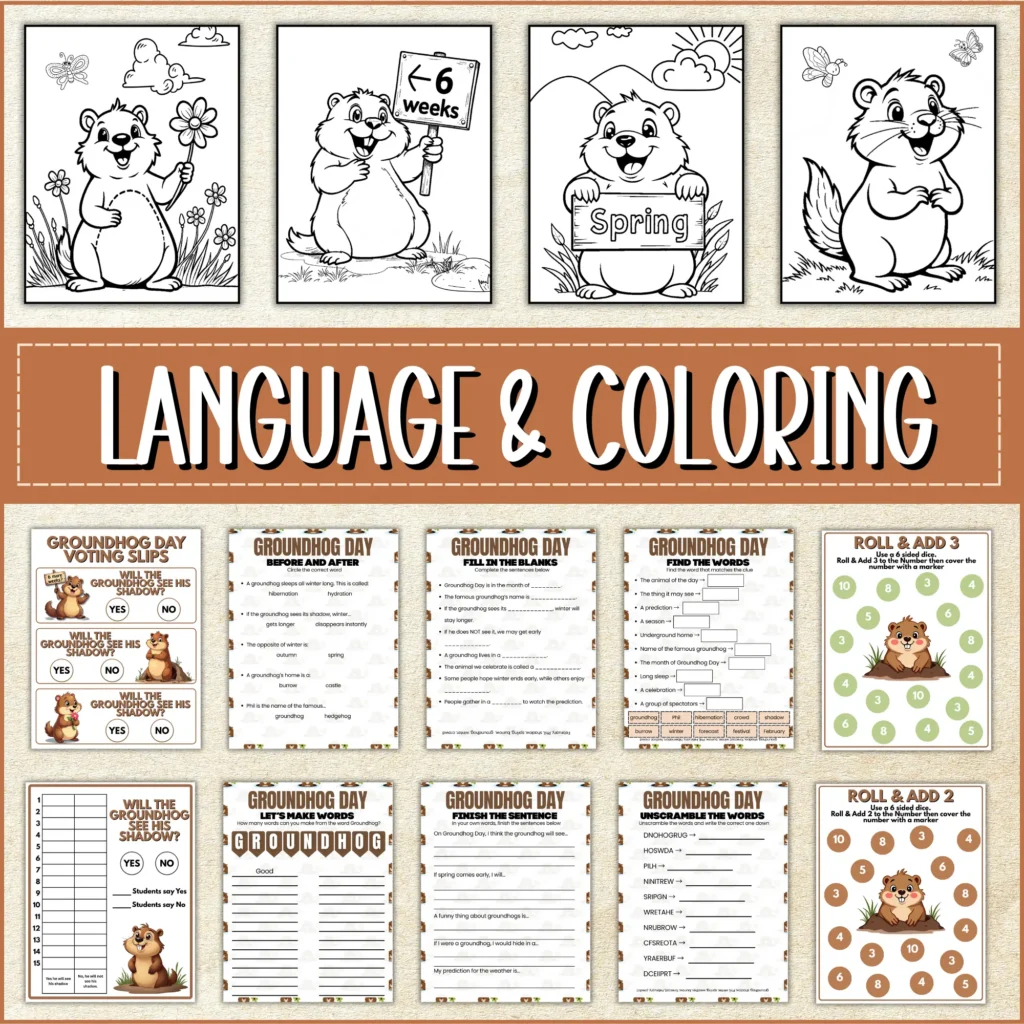 • Groundhog Day Themed Games, Puzzles and Worksheets